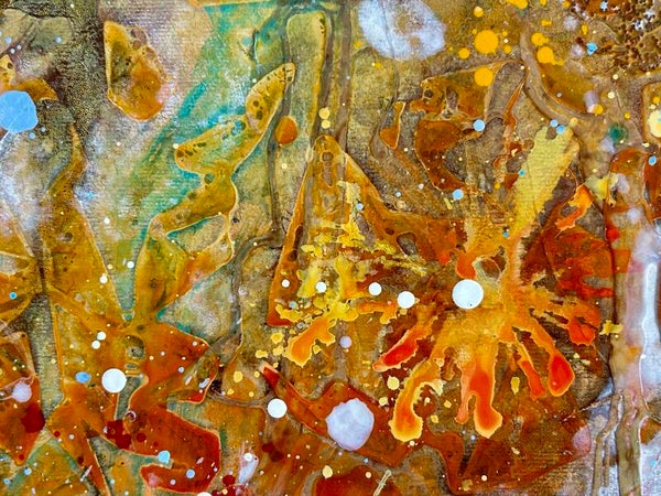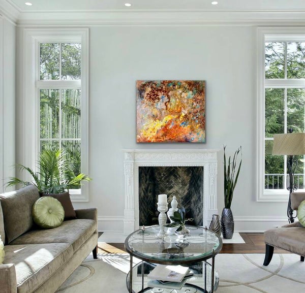 Beschrijving: In "Autumn" wordt kleur muziek. De compositie ontvouwt zich als een symfonie van volwassenheid en legt de serene schoonheid van verandering vast. Door Nata Watts' verfijnde gelaagdheidstechniek vormen contrasterende tonen vormen die zich voor het oog ontwikkelen – elk een uitnodiging om een persoonlijk verhaal te creëren. De warme bruin- en ambertinten lijken op een bosbodem bedekt met gevallen bladeren, gloeiend in zacht oranje en goudkleurig licht. Zachte blauw- en wittinten fluisteren van mos en korstmos, wat de wijsheid van het bos suggereert – de stille waardigheid van het verstrijken van het seizoen.