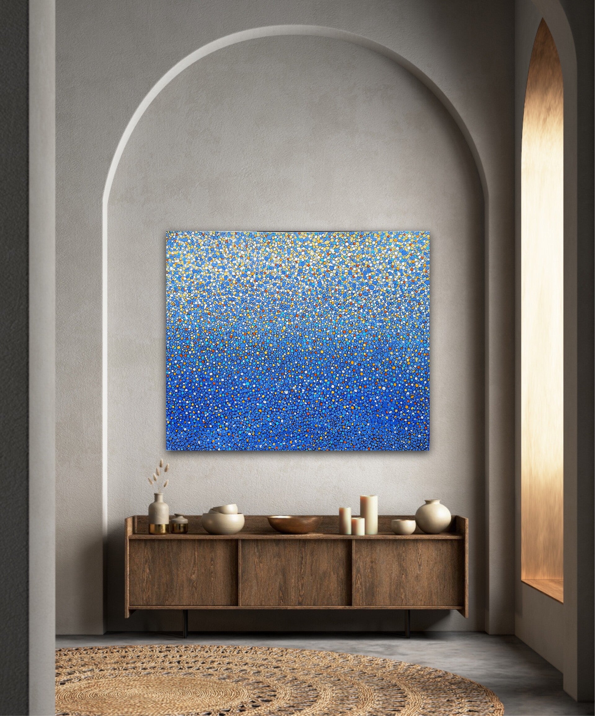 AGGLOMERATION VON BLAU NACH GELB (100 x 120 cm)
